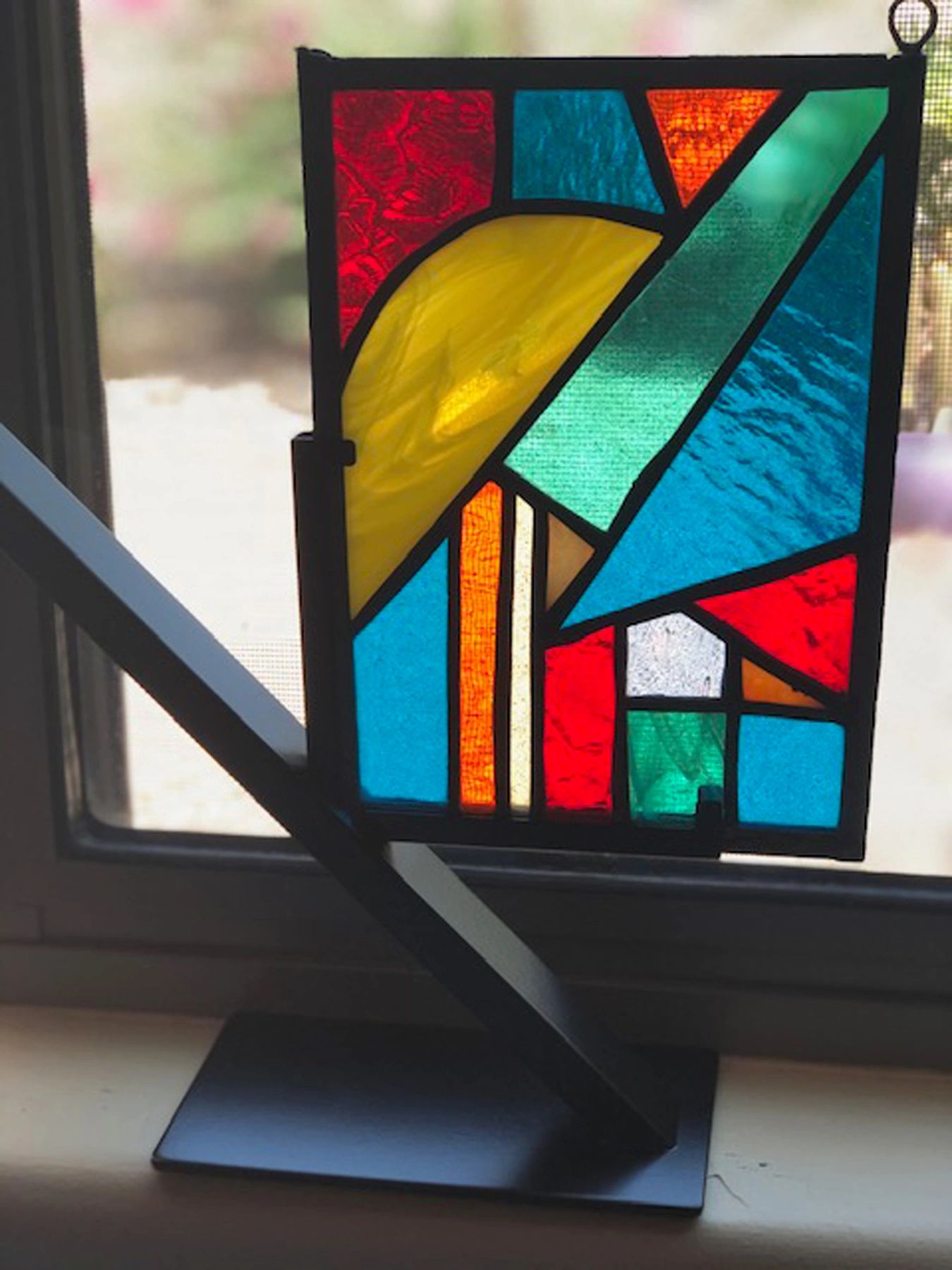 Abstract, approx. 7 x 5 inches, includes stand, $125 , glass only $95, plus shipping costs