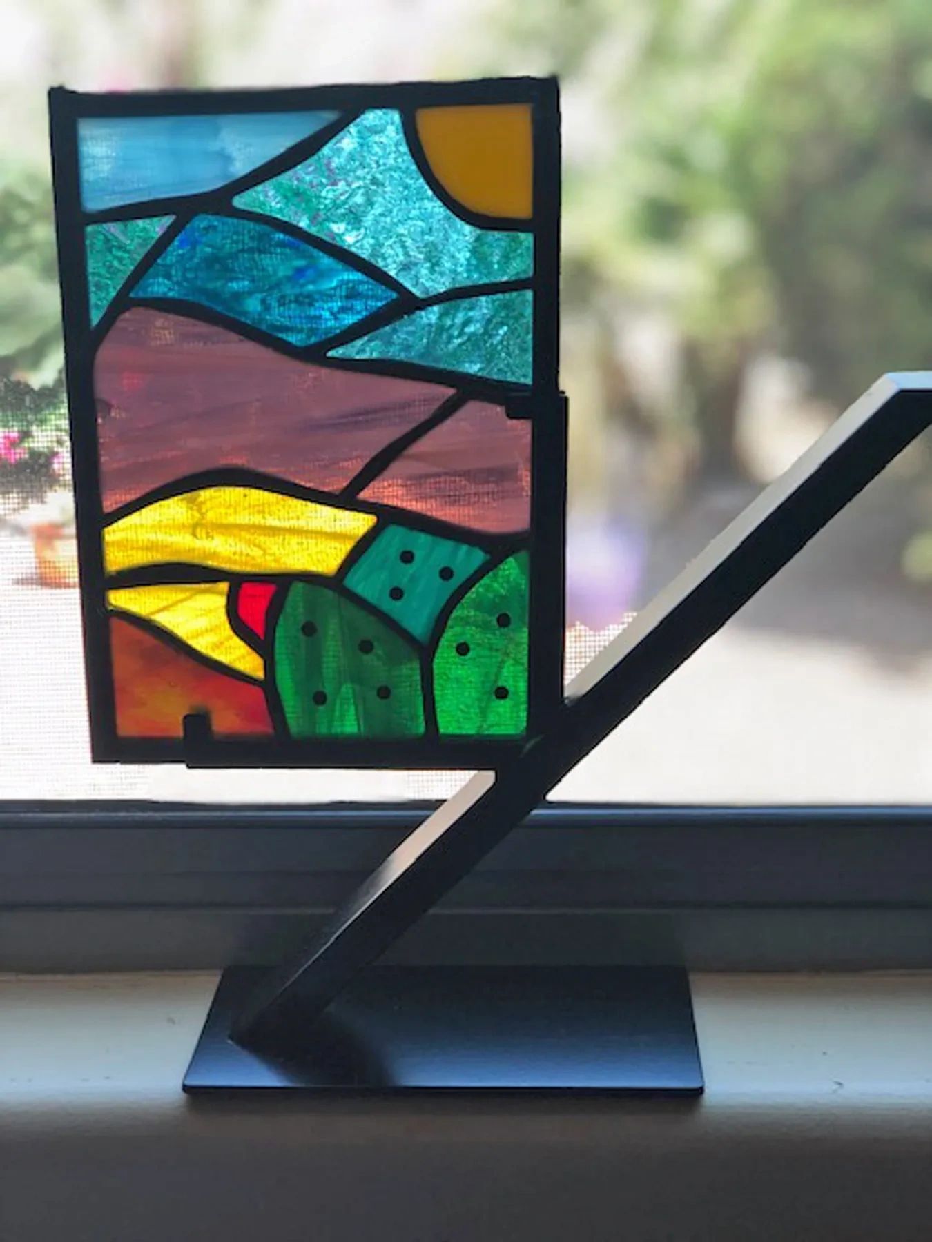 Desert scene I, approx. 7 x 5 inches, includes stand, $125, glass only $95, plus shipping costs